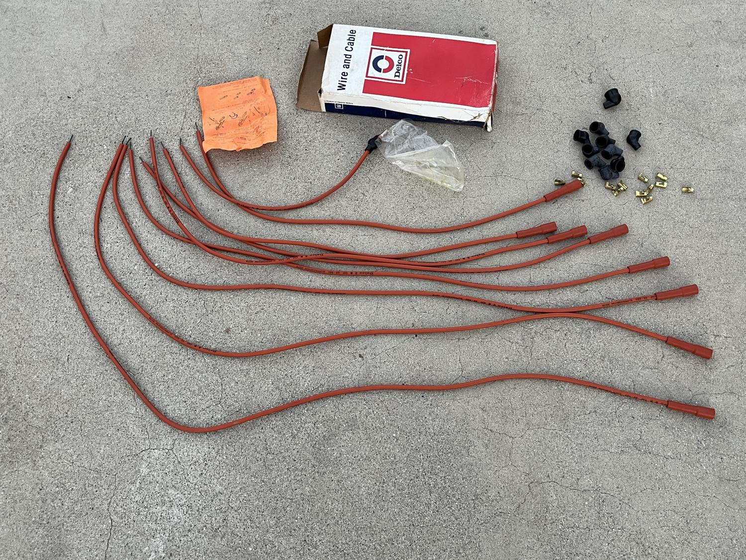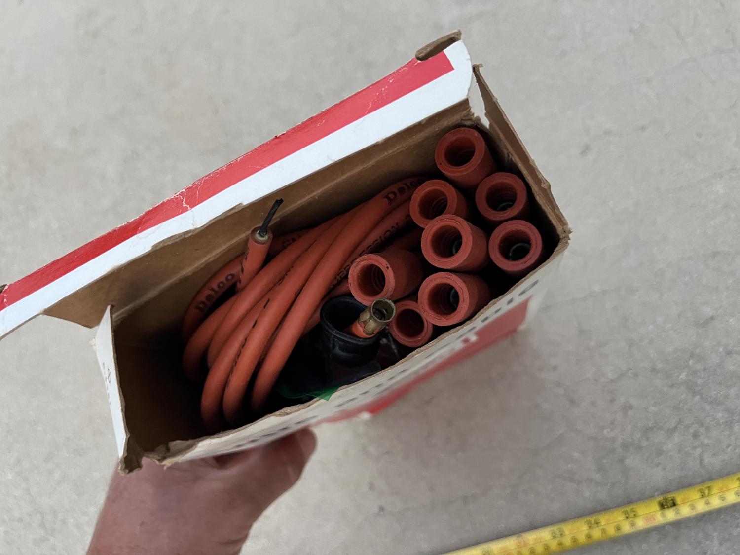 I have an NOS original "cut to fit" set of GM AC Delco SS560 / SS-560 - suppression (anti-static core) - orange HiPo RACE spark plug / ignition wire set. Unlike these, the SS550 / SS-550 marked ones are the 7mm stainless steel conductor wires, FYI. The box is dated 1-78 and the wires themselves are ink stamp dated 2Q78. These are a must have for your Day2 (and beyond) car or street freak or race car or tribute... very hard to find and nicely dated in 1978 - the height of the street scene, or so I've been told. Super rare and hard to find; these have been waiting their turn for over 47 years! Looks like the box was opened, the coil wire started maybe and then the set was abandoned. Part number 8914475 Group 2.239 #SS-561 Ignition Set Straight orange boots. Includes original instructions, on orange paper even! Yard stick included in photo only for scale - not part of this listing of course. Not getting any easier to find by any measure... this stuff is drying up each day... Did Motion use these? Did other tuners? I bet so! And all the cool kids too. Nominal lengths are: 55" 50" 45" 40" 35" X2 wires 30" X2 wires 19" coil wire As soon as you open the hood, BAM, these are right there - be seen with these at cars & coffee next week! It's the details man... And, if your car has a radio - these suppression type wires are the ticket. Cheers Friends, Anthony |