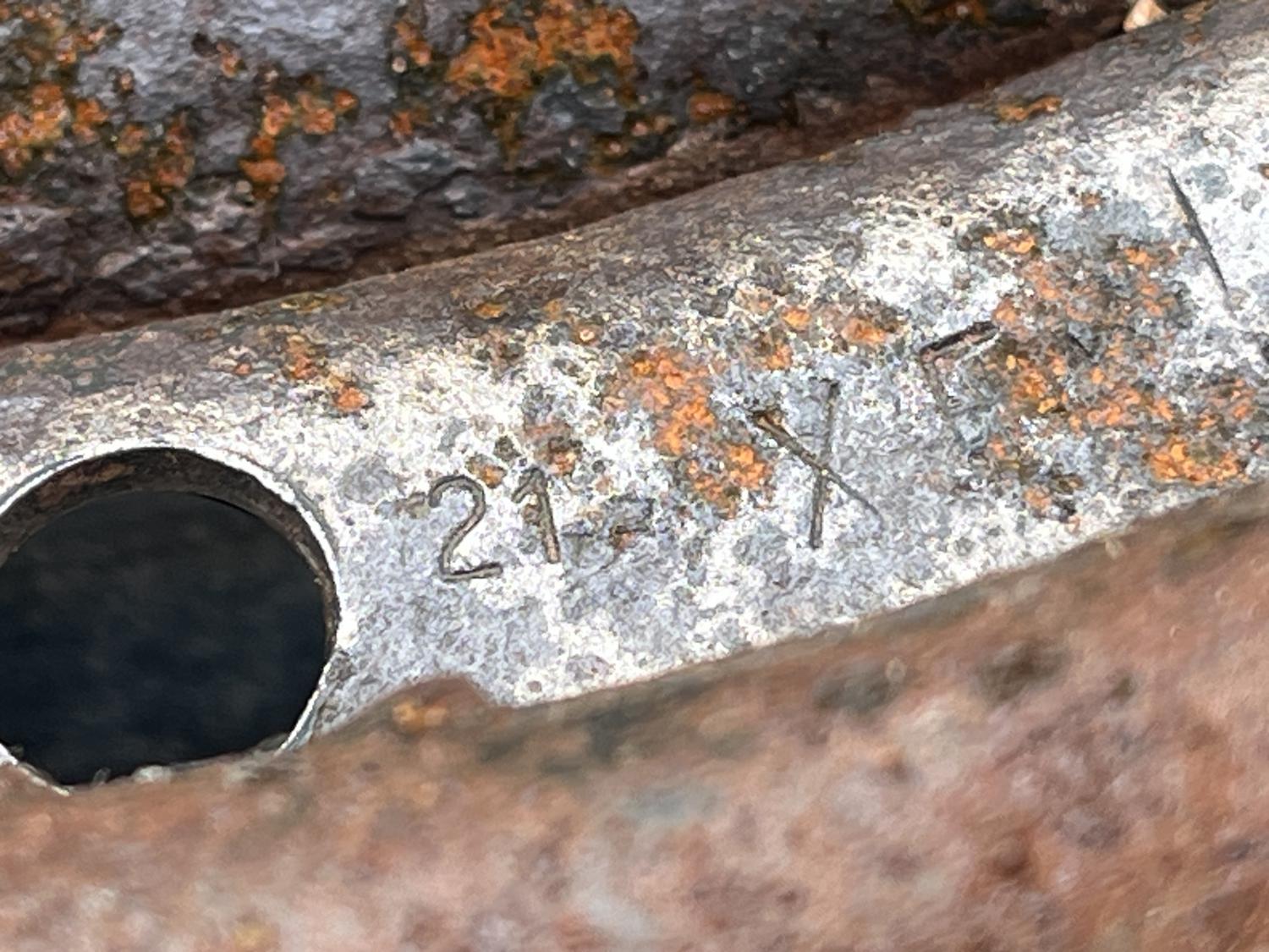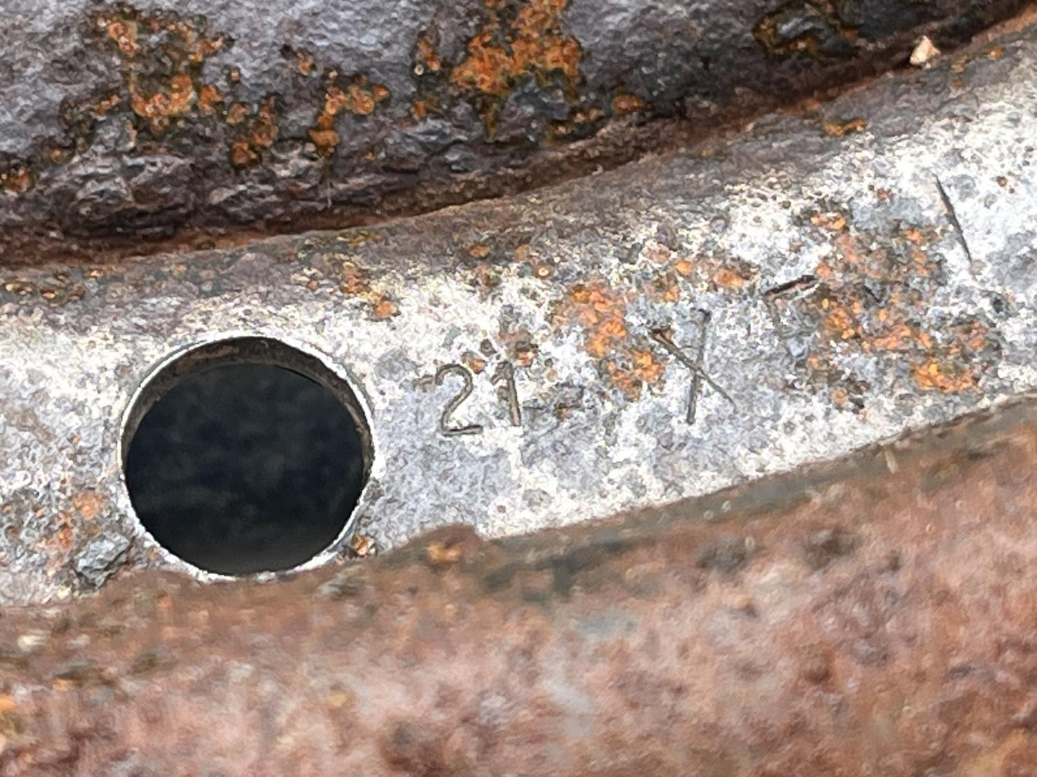 A hard to find PAIR of XF 14X6 1968 Camaro steel wheels. This was the first year for standard dog dish type steel rims on our factory disc optioned supercars - only the ralley rally type wheel was available in 1967 for discs. These are nicely dated at the end of the 1967 calendar year - K17 12 21 - December 21, 1967 for 1968 68 models. They were just found during a restoration of an extremely original L35 car; these were the front rims and have suffered significant deterioration by being on the car with flat tires for decades while it sat near the beach. These wheels are in very original, untouched, and RUSTY shape and are, in my opinion, original paint, if you can call them that. British Green, paint code Z / ZZ - it looks almost black. But make no mistake these wheels are rough and are only here because of their rarity; they will need much work to be presentable and the beads will need to be cleaned up a lot - but they are rare enough to justify IMHO. I've attached many photos to give the whole story as to their (VERY ROUGH) condition. They were certainly used on the car for years and have the typical scuffs from trim rings and may be slightly dinged from a drop or two maybe - no significant curb rash noticeable and a few of the lug holes will need cleaned up / repaired. Indeed, these are what you use when there's nothing else, ...and there's nothing else. Speaking of rarity, these XF examples, again IMHO, are much rarer that the famous 1969 69 COPO and SS 14X7 XT ones; I've had several of those and even sets, but not many XF units; they are unicorns. Make no mistake though, these are rusty, as shown, from a life long California car, that sat outside, in the weather, near the beach. I did sell a nice set of four of these a couple of years ago with the exact same date, which leads me to believe that these were built in batches - which, as we all know, is common practice for uncommon parts that weren't used on the line often. This came off of a 03D cowl tag car. One interesting note is the inner hoop stamps show 14X5 JJ and 67 & 12 - that, again, my opinion, is a mis-stamp on these early wheels, because, as shown, they are clearly 6 inches wide. A stamping anomaly IMHO from this early batch of rims. These are original equipment on and dated for: all 1968 Camaros with disc brakes & SS cars that didn't get rallys same with 1968 Novas / Chevy II with discs & SS cars ...and of course the famous COPO / Yenko / Gibb and other tuner cars with steel dogdish rims. And of course, the unconverted cars too. I believe XF also came on base (non SS / non COPO) 1969 Camaros with front discs. And 69-70 Nova disc brake cars except SS and were optional on drum brake cars in 1969. But these are dated K17 for 68 build cars - Q4 67 and Q1 68 They will certainly clear 1968 GM four piston calipers - single 69 up piston too. Look at the photos again, these can likely be made usable for the restoration of a 1968 super car if you have nothing else. And being original and untouched, you see exactly what you're getting; a terribly rusty foundation to restore these rare wheels. They will need bodywork and metal work certainly. They were on, and rusting on, the front of a "I'll fix it someday" car for decades which was recently sold and is being restored, I have bead blasted by the valve stem - just to confirm the stampings. These should be saved on general principle and for the right car. priced accordingly of course. Thanks for reading. Anthony |