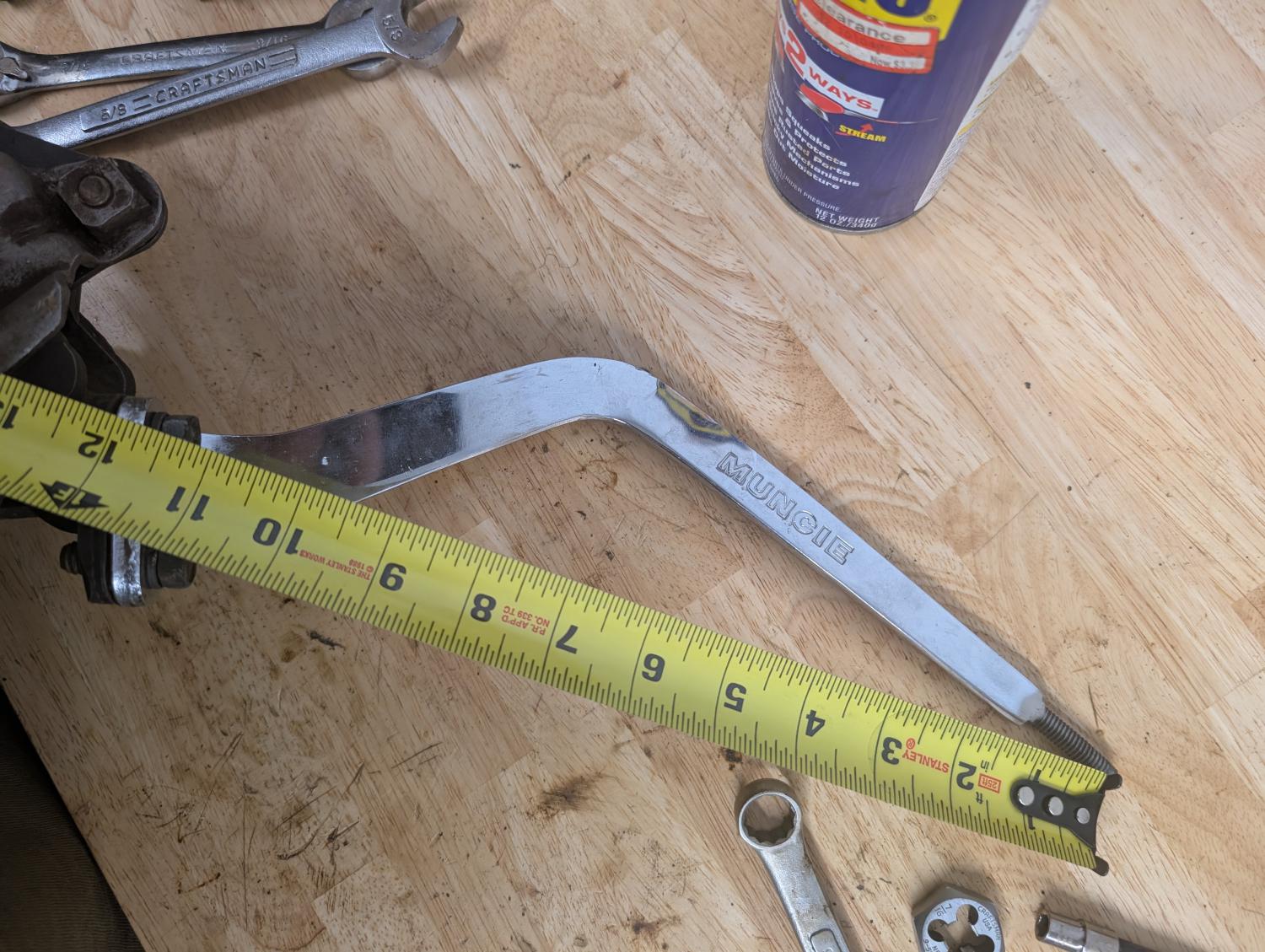 Here’s a photo of Muncie shift levers and dimensions.