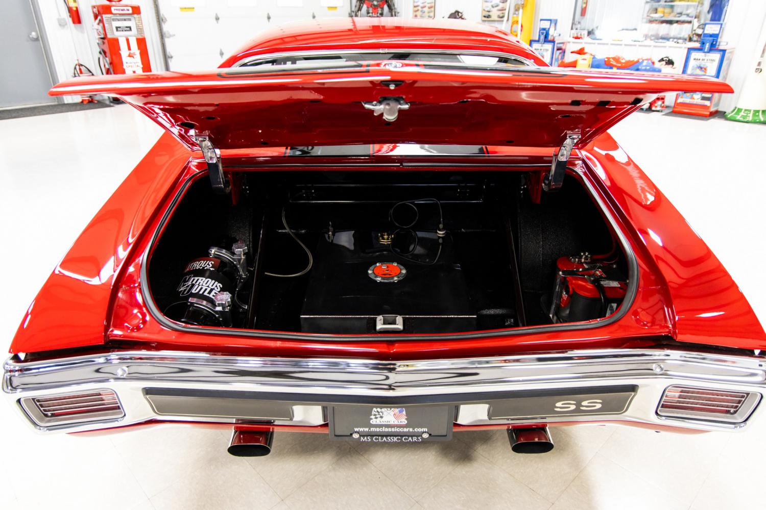 **THIS VEHICLE IS CURRENTLY SELLING ON A BRING-A-TRAILER ONLINE AUCTION. THE AUCTION ENDS ON FRIDAY JUNE 20TH @ 4:17PM EST. IF YOU'RE INTERESTED IN PURCHASING PLEASE REGISTER TO BID DIRECTLY WITH BRING-A-TRAILER. IT'S A QUICK AND SIMPLE PROCESS. PLEASE CALL WITH ANY QUESTIONS.** View the auction here: https://bringatrailer.com/listing/19...-chevelle-105/ Dubbed, “Never Done” – this spectacular 1970 Chevrolet Chevelle LSX Custom was restored to high show quality condition throughout. It was built to pound the pavement on the strip or on the street. It was featured in All Chevy Performance Magazine in October of 2024 which is included. It's also won multiple awards including Goodguys “Custom Chevelle Pick” and Auto Rama “First Place” which is also both included. As the original VIN number indicates this car was built in Arlington, Texas. It was purchased in 2011 by Sam Palazzolo who lives in Houston, TX. Sam retired as the owner an automotive repair shop and dedicated many years to restoring this car hence why it's been dubbed, “Never Done”. His nephew Tim Palazzolo, the owner of GAP Industries assisted in some of the restoration. GAP Industries is one the top custom classic car shops that have won many prestigious awards over the years. The car was sent to David at Master Auto Body and Upholstery located in Houston, Texas. It was placed on a rotisserie, stripped to bare metal and painted. Sam did most of the assembly work and completed the car around 2014. The car was originally built with a 582ci big block with 1,071hp and a TH400 transmission. Having all that power was fun for a while, but the lack of street manners made it cumbersome to drive around town. Tim convinced Sam that replacing the engine with a 468ci LSX with a 4L80E transmission was the way to go as it would have plenty of power and the car could be driven on the street with no issues. Sam took Tim's advice and installed the new drivetrain in 2020. The entire build has just less than 400 miles of which 89 miles have been logged with the new engine and transmission. After 14 years of ownership and in his late 60's Sam decided to part ways with his labor of love. The exterior of this car is absolutely stunning with its iconic factory design and overall condition. During the restoration process some of the sheet metal was replaced such as the front fenders and right rear quarter panel. It was outfitted with a Harwood fiberglass 4” cowl hood. The body is extremely straight with excellent gaps lines throughout. The doors close very nicely. It was refinished in Glasurit Boyd Coddington Red with black racing stripes. This color is striking and dresses the body perfectly. The show quality paint is virtually flawless and was recently detailed to a mirror finish by the team at MS CLASSIC CARS. Everything on the exterior has been replaced new including the front windshield glass, door glass, quarter glass, rear windshield glass, stainless glass trim, drop moldings, drivers side mirror, headlight bezels, headlights, front grille with SS emblem, front bumper, door handles, tail lights, rear bumper and pad with SS emblem. The car rolls on Weld Racing Alumastar 17x4.5 front wheels and 15x12 wheels. The front wheels are wrapped with Hoosier Drag Racing 27.5x4.5x17 tires and the rear wheels are wrapped with Hoosier Quick Time Pro 29x14.5x15 tires. The rear end was mini tubbed to accommodate the larger wheels and tires. Please note these are drag racing tires which aren't intended for regular street use. If the new owner wants to use the vehicle frequently on the street it would recommended adding new street radial tires. The interior of this car is beautiful with its designed appointments and standard black color. It was outfitted with a 10-point 4130 chromoly roll cage by GAP Industries that was finished in black. The removable door bars and pins are included. It's equipped with a RJS Racing Equipment racing harness. GAP industries also installed new American Autowire wiring throughout. During the restoration process everything was replaced new including the headliner, dome light, rear view mirror, dash pad, dash fascia, door sills, door panels, door hardware, center console, bucket seats, rear seat, rear package tray, pedals and black loop carpeting. Some of the custom features include Dakota Digital HDX gauges, Ididit tilt column, Summit Racing 14” chrome steering wheel with black wrap, Vintage Air Conditioning, USB port, horseshoe shifter converted to OD, operational line lock button added to console, Retro Sound head unit, Pioneer 4.5” and 6x9 speakers, black carpeted Chevelle embossed floor mats. Three buttons were also added in the ash tray for the Nitrous system. The trunk compartment was completely restored and refinished in textured black paint for durability. The trunk lid pivots on aluminum hinges. The trunk houses the roll cage bars, 18-gallon custom stainless fuel tank, Nitrous bottle and Optima Red top battery. A power cut off knob was installed under the right side of the rear bumper. The engine compartment of this car is highly detailed throughout with all new parts. Eddie Motorsports aluminum hinges support the Hardwood fiberglass 4” cowl hood that was smoothed and painted red on the backside. The firewall was smoothed and painted red. The inner fenders and radiator support were also painted red. All of the red paint was color sanded and buffed. The heart of this car is the Chevrolet Performance LSX 468ci that's rated with 850hp and with 1,150 on Nitrous. The engine was built by Late Model Engines (LME) located in Houston, Texas. LME is known for building no-nonsense LS an LT based engines with the utmost in performance and reliability. The LME bullet features a 4.185-inch bore and 4.250-inch stroked Callies Magnum wet-sump crankshaft, Diamond forged 12:1 pistons and Callies Ultra Billet 6.350-inch H-beam roads. The camshaft is a hydraulic roller and the heads are Brodix aluminum LS7 massaged by L