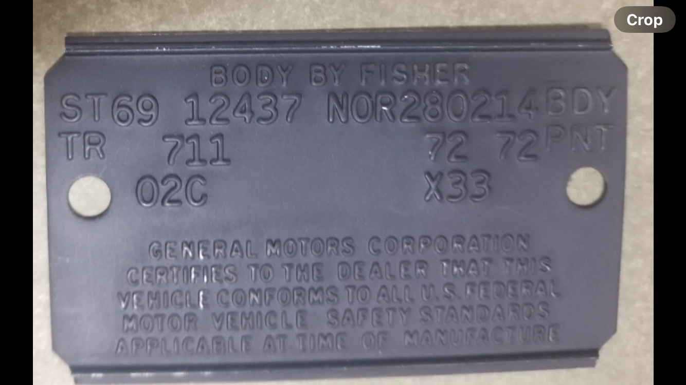 reported VIN 124379N694129 N694129 was final assembled on or about October 3, 1969. Car has a non-original 12A [1st week December 1968] body tag. The upper dash panel has been replaced, breaching the factory VIN tag installation. Both tags may not be original to the car; hidden VINs should be verified. Car recently sold at the 2025 Mecum Indy auction.
