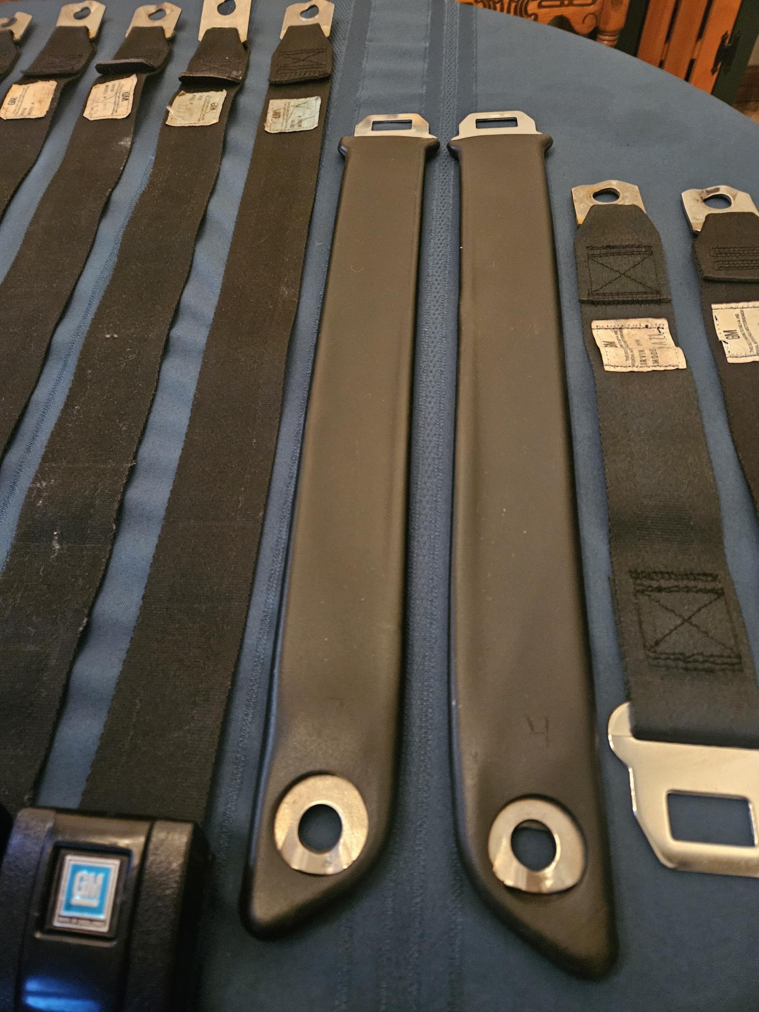 Very nice buckles and belts with minimal wear. Nice legible labels with 23rd and 35th to 37th week of 71 dates. Nothing like original belts for your Camaro. Mike Munro 518-526-3379 |