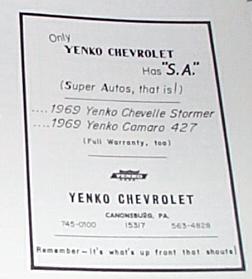 Found this little ad for 1969 Yenkos in Oct 1968 SCCA newsletter. Lists a 427 Chevelle Stormer.