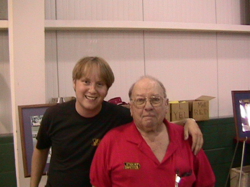 The pic was taken at last year's York US 30 reunion. What a show. Grump was a gracious guest of the show, but he was his legendarily contrary self. I shook his hand, spoke with him for a few minutes, and bought a T shirt. When I removed the shirt from it's plastic baggie to have him sign it, he grumbled something about not unfolding it. I kinda wanted him to sign it big on the back, so I could frame it or something, but just as I began to let it unfold he barked at me "Hey I said don't unfold that!" He snatched it out of my hand and signed it on the front above the Jenkins Competition logo. Guess you get it Grump's way or no way.