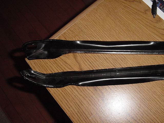 Those are the F41 Rear support frame brackets.They bolt to the same support as the Boxed lower control arm,then trail up to the top of the mid Rear frame rail,over the pumpkin.They should be around 18 inches long.They prevent twisting of the frame,and cloners almost ALWAYS forget to include these.It's one of the first things I look for on a questionable car.