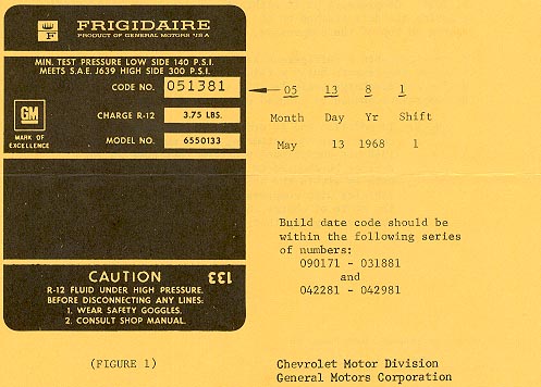 Ok,here is the info from a 68 TSB.The info was given to identify compressers with a refrigerant leak due to a "bad seal".The codes noted in the lower right were the "problem" compressers.