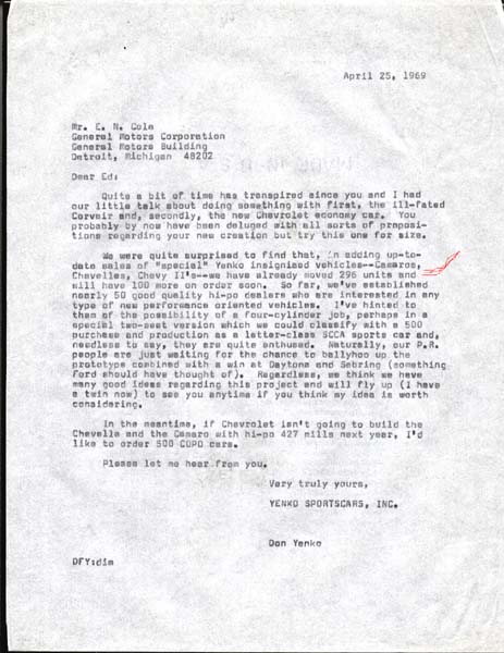 Notice this letter to Ed Cole, dated April 25, 1969 Don says they have moved 296 units and 100 more on order.