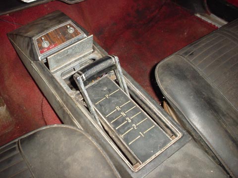 I have a 67 Nova with this console in it and have no idea what it is originally from. There is a compartment in the rear, staple shifter, and ash tray in front of the shifter. The front slants down and there is a removable piece that mounts on top of the slanted portion. Just wondering if somebody can ID it for me.