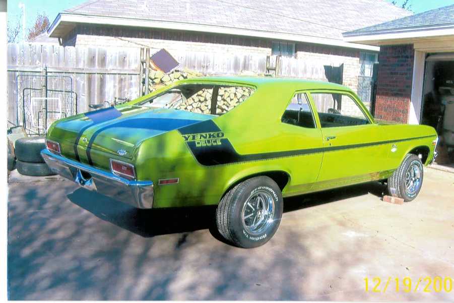 Marlin 70 Yenko Nova-350/360, 4speed M21, 4.10 Posi (Daddy's Ride) 69 SS Nova-396/375hp, 4speed M20, 3.55 Posi (Benjamin's Ride) 67 RS Camaro-327/250hp, 2speed Glide, & 3.08 Open (Danny's Ride) |