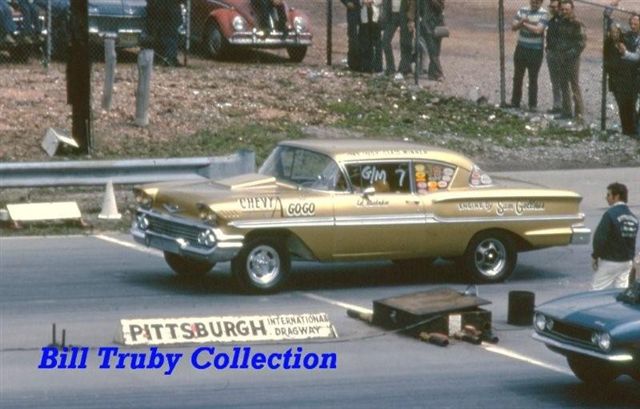 The old Cayne is alive and well in Pittsburgh still. Ed Matsko still owns it and runs nostalgia races with it. (restored) He also campaigns one of the nicest 69 camaro race cars around painted the same color as his 58 Bisquick! Runs all the NHRA DIV-1 points meets in SS/FM. Its a gear changer like the 58, and for an older guy he can wheel that bad boy pretty well too!!