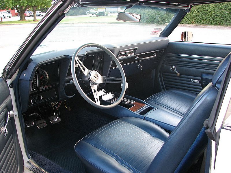 Albert are you looking for a chevelle or camaro? Chevelle SS cars had black steering wheels and knobs, other cars non SS had color coded to the wheel/interior, camaro cars had color coded to the wheel/interior no matter if it was a SS/Z28/etc.