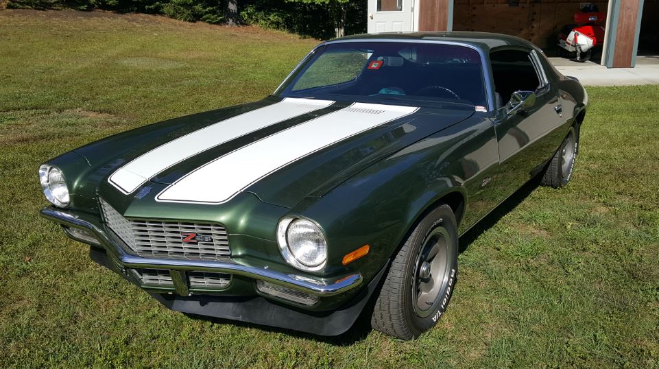 70Z28 04B Norwood Forest Green-white Stripes Black DeLuxe Interior Owned since 1978 - First Car |