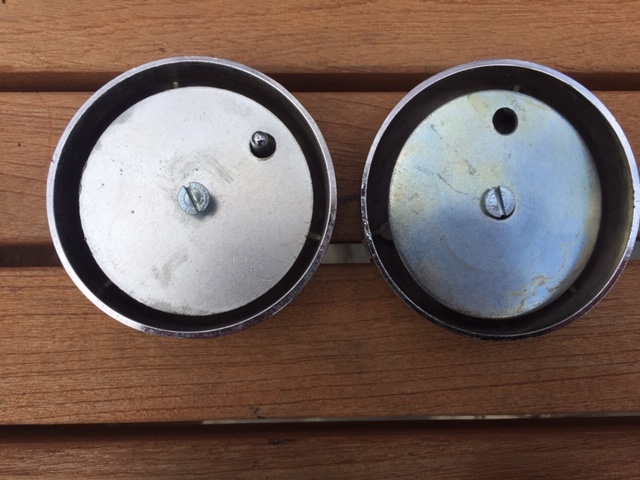 Set of 4 Cragar no R caps. Blue color in center is very nice. Missing 1 screw. Reflections in chrome are trees and clouds. One has some peeling on the side which is shown otherwise I think while not perfect (some very fine marks in chrome) better than most. Happy to shoot some more detailed photos if you provide me email or phone. $135 plus shipping. Ad should be in classifieds will try to move or relist.