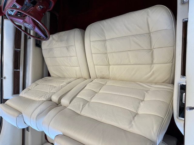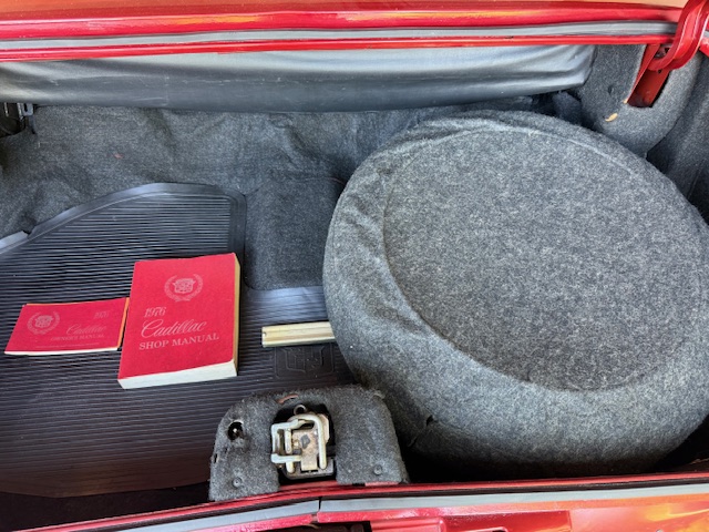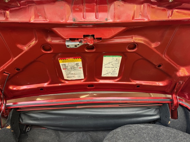 Firemist red, white interior and top. Purchased from an 82 year old man in Jupiter, FL. Numbers matching car. No rust anywhere. Frame has typical patina from the Floida climate. All fluids recently changed. Transmission service performed. Overhauled brakes including replacing hydro booster and master cylinder. Front end suspension inspected. Floor pans inside are mint. New sound deadening and new carpet. A/C converted to 134A. The windows and power top work well. Radio/8 track not working properly. Car was repainted at some point, but in very good condition.