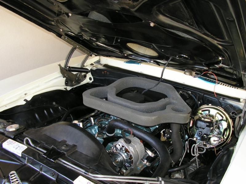 Here's a pic of the engine. Answers to some of the questions: -steel hood -metal reproduction upper and lower pans -correct 3.55 ZH rear end -rare '69 only (Camaro/Firebird) 2-piece brake rotors -Tach, stack gauges |