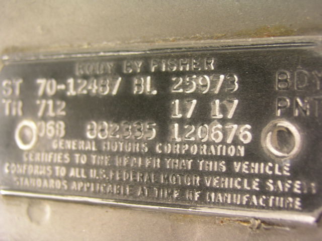 There is of course the VIN tag riveted into the dash area The VIN's were also stamped on the Z-28 and 402 Blocks and Transmissions.