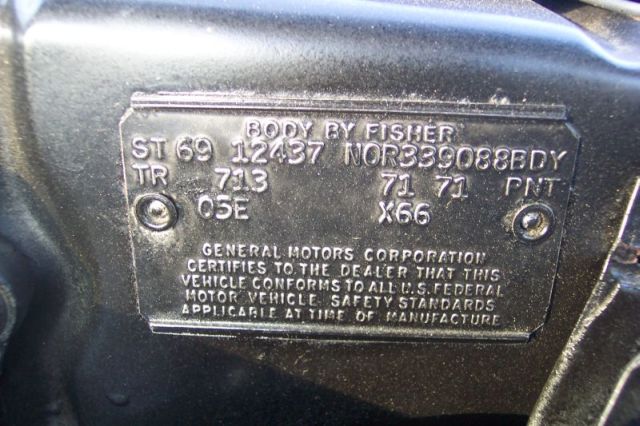 OK first Thank you Steve for calling my expert lol. Im sorry for the emotions but it was hard to hear. The tag is a fake, I had no ideal thats why I argued so hard, boy talk about the wrong place to do that lol. It is nice to know my Z is right or at least it can be. As for this car, it has over 80k including the car in nut and bolt resto. It has big block heater core, disk brakes and 12 bolt multi leaf springs. I want to sell so make offer based on the trim tag not being real. Again sorry Hylton for calling you out when you were clearly right on this car, but the Z is correct just so you know, steve said he has seen it and its very rare but they did do it. Also got that link working and reading it as I type, thanks for not banning me and letting me know cause I really dont want to rip nobody off.