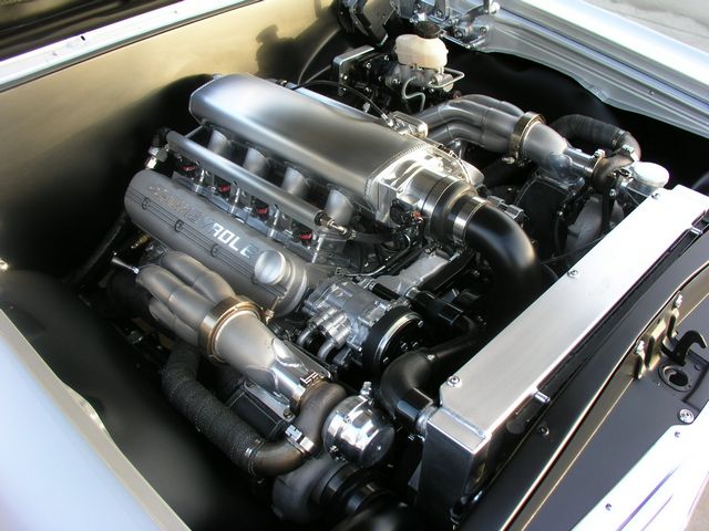 Got the engine installed, hooked up and modified the lokar cable shifting mechanism to work with the 4L65E trans, also worked on the Exhaust system...