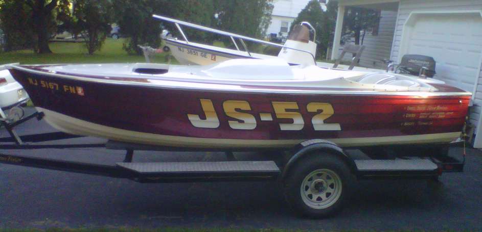 After going to the somewhat local boat races most of the summer and since I was looking for a boat to play with, instead of getting some big block jet boat, I decided to get one of the Jersey Speed Skiffs. I went for a test ride the other day out on the bay and all I can say is what a different feeling of speed when it's on the water! It's a 16' Jersey Speed Skiff with a 350 Chevy putting out 450 hp. When the 4 barrel carb opens up the boat is pretty much out of the water. You can feel when it hits the water again and the prop grabs and shoots you forward. I took my first drive today and kept it to 5000 rpm's. You need to get the feel for what it's doing. The turns are interesting as it gets up on it's side at 60-90 degrees to the water and you can put your hand down in the water as you take the turn. That is if you decide to take a hand off the steering wheel! Oh, and I would recommend ear plugs as the open exhaust can get to you after 15+ minutes.