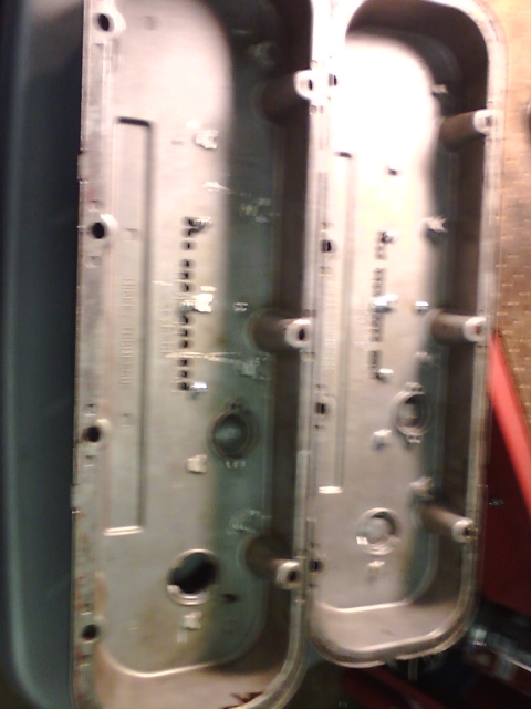 These are a set of finned aluminum Mickey Thompson Big Block Chevy Valve Covers with a set of the extremely rare M/T long breathers installed on them. These are the early versions with "427" cast into the logo. This VERY particular set of valve covers has the neat distinction of having been used on the Jim Kirby/Dick Harrell Camaro Funny Car in the late Sixties and then used on the ex-Braun Bros. 1955 Chevy C/Gasser. They were used on the Kirby Funny Car in its' early Injected days. They are a small piece of drag racing history. They are not perfect with a few small nicks on the fins but they do qualify as very nice with no cracks or weld repairs. The drippers appear to have been removed with a rotary file sometime in their life. They would make a great addition to a Day Two Supercar or Drag Car restoration. $450 + shipping. Thanks SYC!