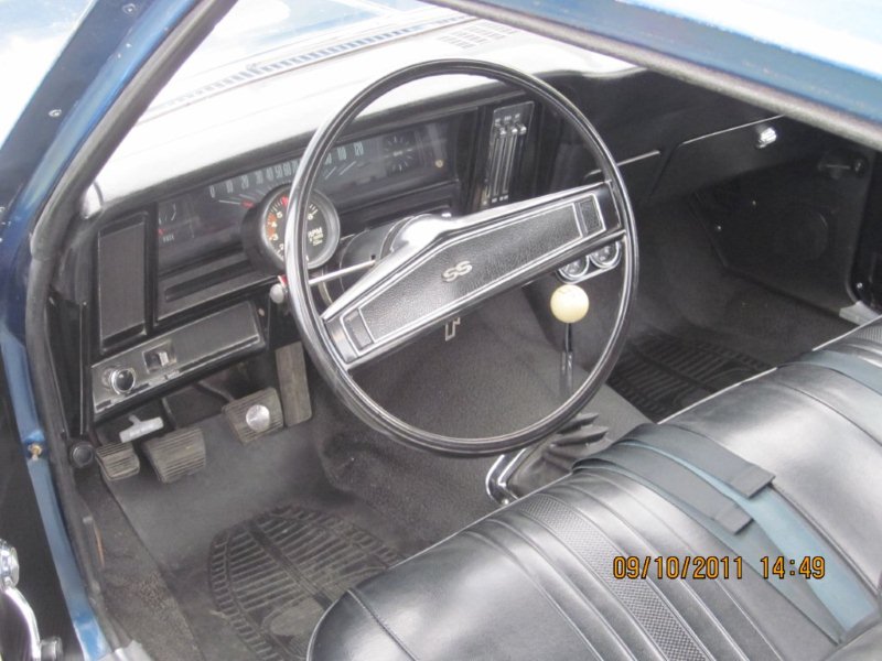 this is the real deal,no bs. fathom blue,black standard bench seat. has its original engine,original m20 trans and cbs code 12 bolt. the 396 has its original heads but 69 intake, i do have a correct dated intake that goes with it.i have traced owners back to 89,the restoration was done before the guy i traced it back to owned it.it has had gm full quarters and outer wheel houses.paint is laquer and is checking. original rust free floors and trunk pan.has its original 14x7 ralleys and original white stripe general spare.