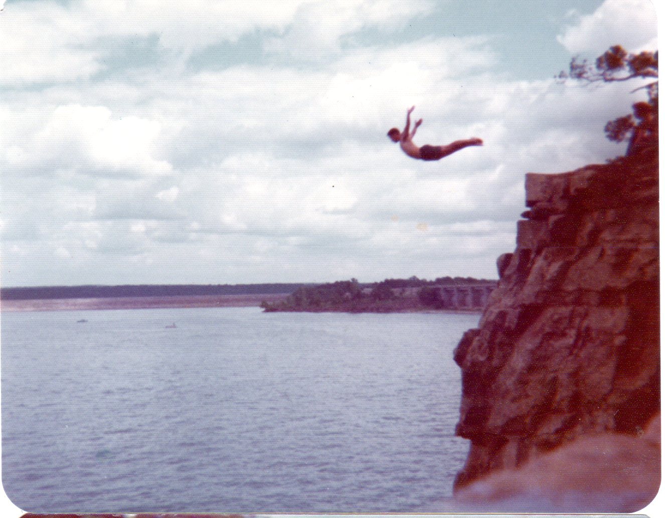 You can't tell us about drunk driving (we don't need to document that). You can't tell us about the car (boat, motor etc.) that you passed on in the 70's. Really, all of us over age 55 did that. I am sure if I think about this long enough, I will want to revise, but this is what I am thinking tonight. Try to keep it clean. I'll start: 1. Cliff Diving from 70 feet 1.a. Gainer from 70 feet 2. Married at 22 3. Tried to water ski behind a sail boat (hey, we had 50mph gusts). It was fun trying though. 4. Ran home from the church (about 6 miles) one afternoon not knowing there were 100 mph winds and rain on the way. Almost didn’t make it. And... it was raining so hard my ex-wife drove right by me and didn’t see me, almost running over me (yeah, the one I married at 22). 5. Snow skied in shorts for 6 hours (no shirt for about 4 of that) on April 12 one year in Santa Fe. Bright sunshine all day long. Could still see the tan line three years later. Pics attached for 1 and 1.a. And the smartest thing I ever did: Married Sherri.