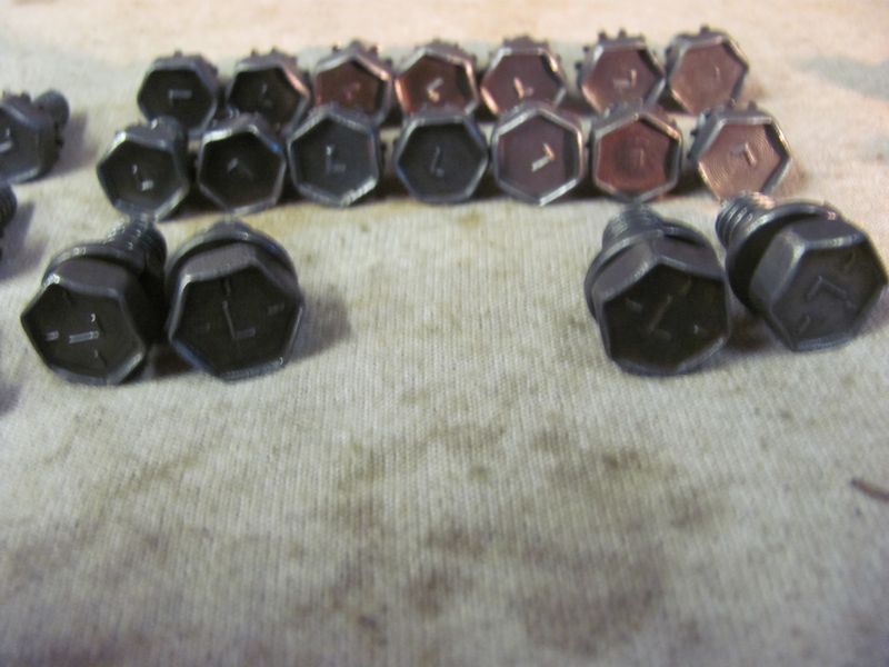 This set is for the LARGE Flag design. 11 Timing chain cover bolts (Flag) 14 oil pan side rail bolts (Flag) 8 water pump backing plate bolts (Flag) 4 inspection cover bolts (Flag) 4 oil pan corner bolts (ELH) THESE HAVE ALL BEEN CLEANED AND ARE READY TO INSTALL ALL WASHERS-STAR AND LOCK SPIN FREELY ITS VERY HARD TO FIND NICE CLEAN COMPLETE SETS 100.00 (2 sets available) |