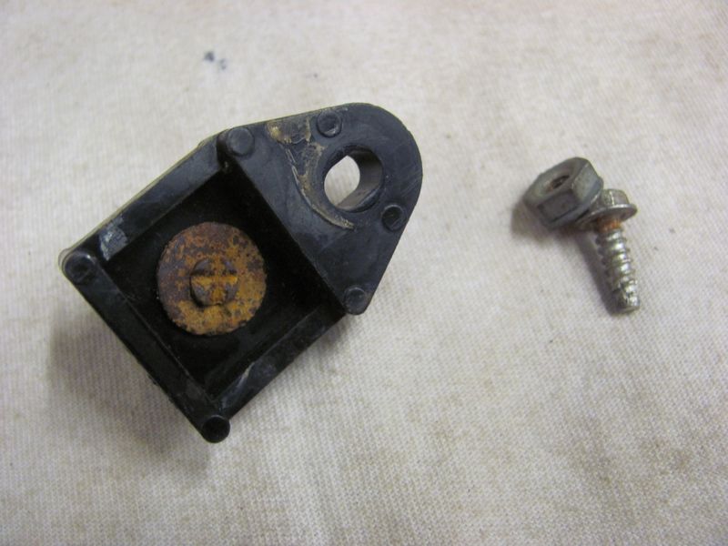 ORIGINAL SURVIVOR radiator support junction block, Special nut and unique mounting bolt (1/4" recessed flanged hex w/ blunt self tapping tip)