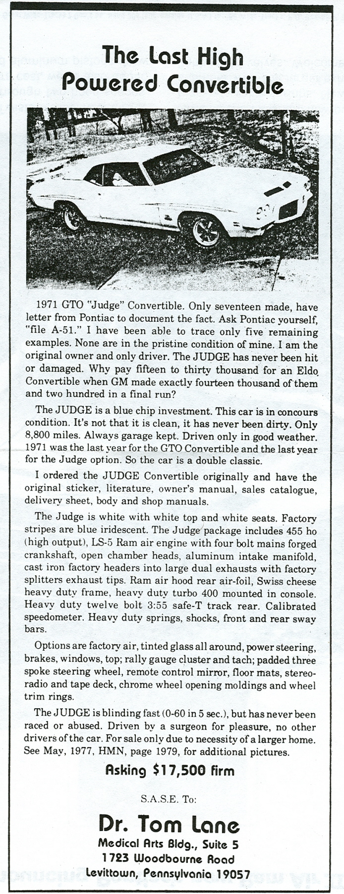 wow.. I nearly fell over to see TWO 71 Judge convertibles(17 made)in the same color combo! One had to be Tom Lanes old car