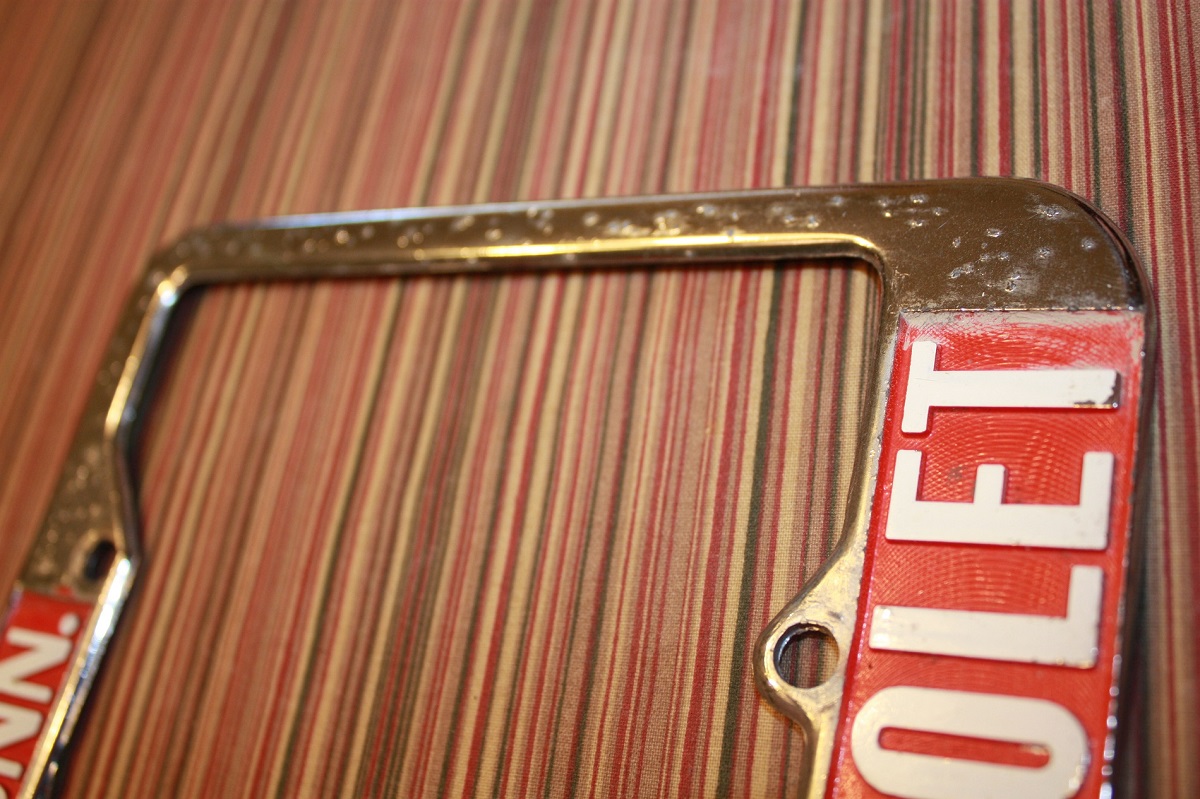 Loehmann Chevrolet license plate frame. Has pitting and red paint wear, see pictures. $75 plus shipping.