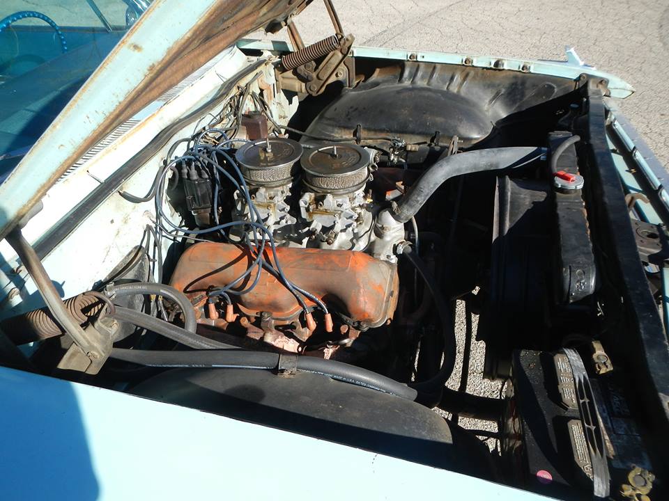 The car appears to have been an original 348 with three in the tree, 3.70 posi and dual exhaust. The 409 is 1965 and the 4 speed transmission is a Saginaw. Has new brakes and springs front and rear, flow master exhaust.