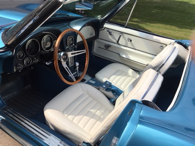1966 Corvette Convertible, Nassau Blue with white/blue interior and white dated soft top (as originally equipped). Original drive train consisting of 327/350 L79 engine, 4-speed M20 transmission (Hurst shifter with stock handle), and 3.36 posi. Paint, top and chrome all done by Tri-Power in Chicago. Also equipped with AM-FM radio, teak steering wheel, off-road service exhaust, and 7.75-15 Firestone white stripe tires with original steel wheels and original wheel covers. The body of this Corvette is straight and true with excellent original panels. Utah and Arizona car. Runs and drives very well.! $72,500/near offer. I’ve owned this car twice, posting for a good friend. timg@ccinsurance