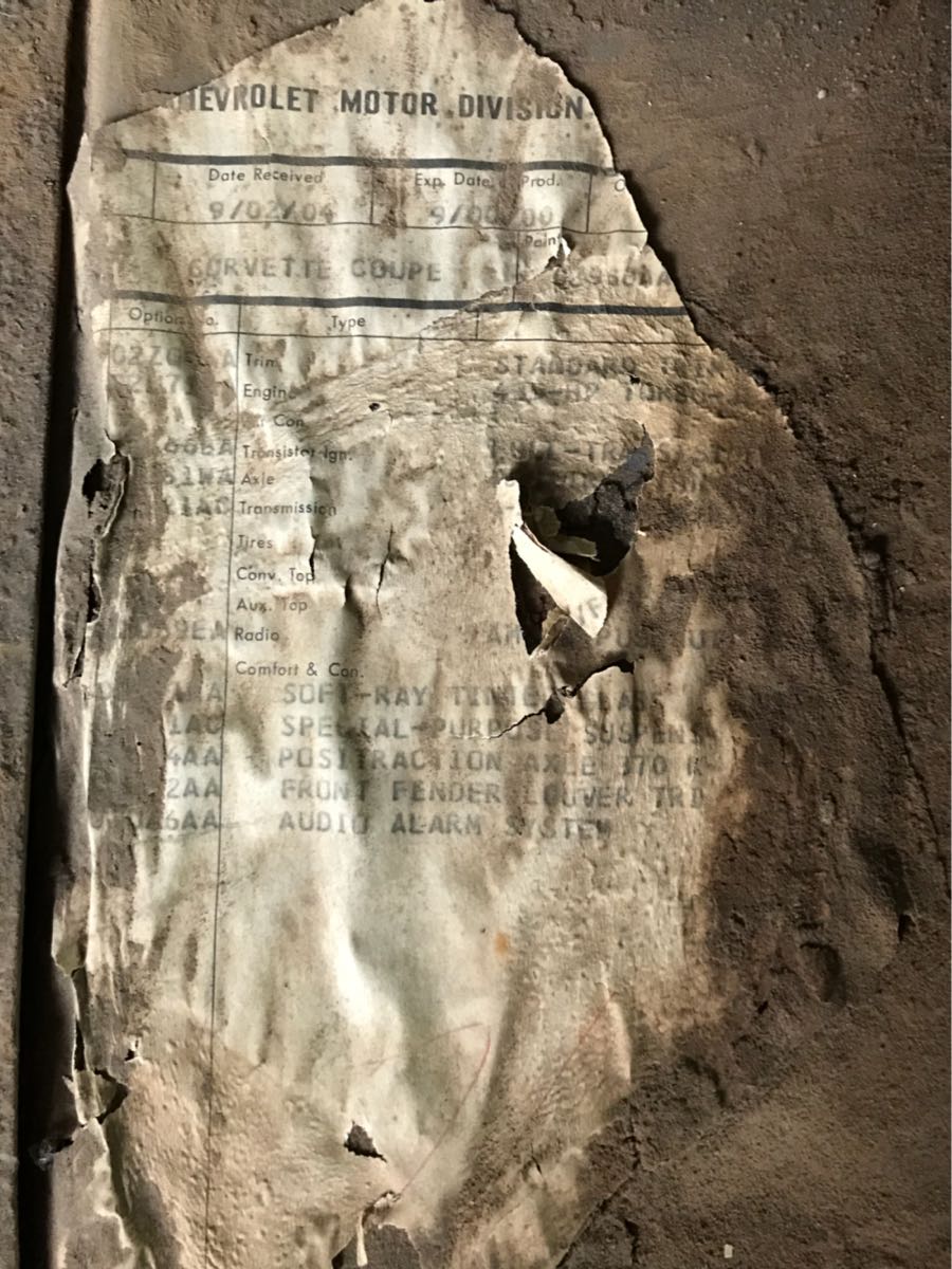 Nice California Vette with a mint frame, birdcage, original engine, original 3.70 rearend. M22 Transmission dated 1971 with no Vin. Two of the three carbs are original, TI ignition alternator original. Everything works on the car drives awesome, runs great. Build sheet, POP, window sticker, original black plates, original paper tag original delivery paperwork. Appears to be a no hit body decent paint. Mileage shows 64K, door panels have been replaced, older replaced carpet. Just a good original L71 that has not been hammered. Rear glass comes out stores nice in the tray. Original dated t top covers are with the car. Car does not leak. Diverter valve on the smog is not correct for L71. I got it as good used original at Carlyle. Alarm does not work. 704 904 6092 Lawrence