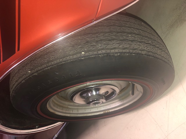 The rally wheels are unrestored and tires are Firestone Wide Oval Super Sports (don't know what vintage the tires are, but they ride nicely and are in mint condition). I know, I know... the rally caps are '67s and the trim rings are missing... long story. I will try and find a correct set of 68 caps and trim rings.