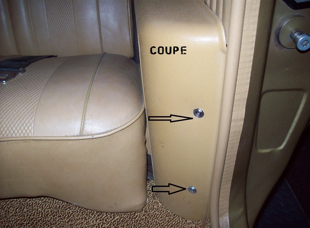 These screws are found only along the side of the rear arm rests with ashtray which have the larger sized washers that is correct for this location. Fits Convertible or Coupe. Four to each set, I have 8 sets in stock. All Assembly line screws I have had for years. No sence in me keeping this stuff and time to move some of my hardware.