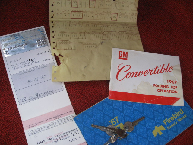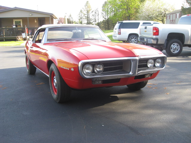 I put this car on ebay item #(202668629410) for a buddy who is having some health issues,its not a supercar but a nice little driver if u like pontiac firebirds,has a 3spd with ohc 6cyl that runs good,real red/red car with full paperwork p.o.p.buildsheet etc.The paint is very old and has some scrapes and dings but still shines and looks good and straight,the interior is orig and very nice and so is the orig white conv top which looks great,floors and trunk are the nicest u will find on a conv like new,all glass,chrome ,trim,weatherstrip all orig stuff. Its a 70,000 orig mile car with a very old repaint, has had some old metal repairs at the usual lower areas of fenders and quarters and rear bumper and front bumper have a dent,everything works on the car and other than 40 yr old tires its ready to cruise.Options are p/s,tint glass,conv top,radio,rear antenna,thats about it,its a great local cruise in car or perfect for a ls swap either way its cheap for a decent 67 conv thats all orig and good colors asking 20k...thanks 570-854-0896