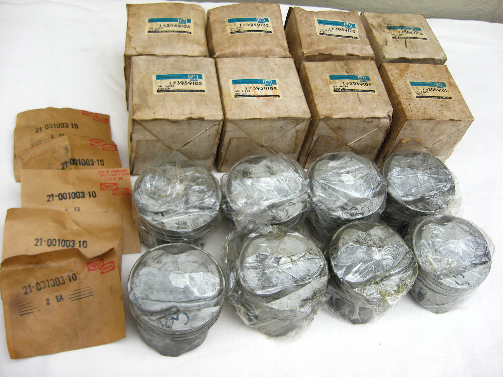 Full set of (8) NOS GM standard size pistons for the 1969 ZL1 + L88. Made by GM 50 years ago. It seems they stayed well protected because they were oiled then put in plastic. ******SOLD********