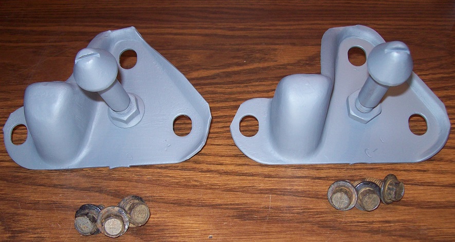 -One came off a Kansas Leeds SS with matching 12 point "Anchor T" marked head bolts $70 -The other many assembly plants with Matching "C" marked head bolts $60 Both hood catches in Excellent condition with a grey primer applied, just finish off with a spray of grey phosphate from Eastwood or other company. Shipping add $15, USD funds with Paypal "Friends"