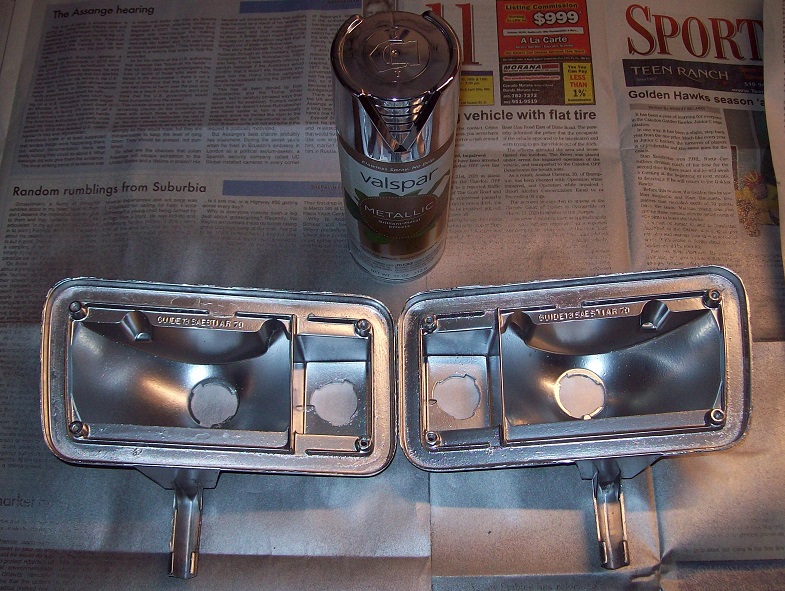 Bottom white holder/cups with screws are now *SOLD* seperately. Price for the Housings are reduced to $125 for the pair and only the inside finish has been restored so they match perfectly, ready to install on a car. I also have a couple of Tail Light Lens screw sets at $35 per 8 if someone needs those separately. $18 to ship. Paypal "Friends"