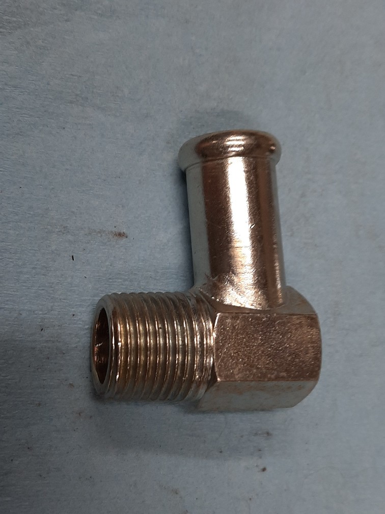 Excellent original restored water pump outlet, 3/4 inch opening. This design has the narrow hex with notches on the corners. Very nice; very hard to find good originals like this. $40 PPFF (X1)