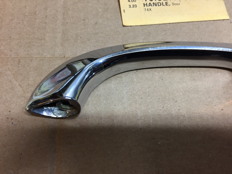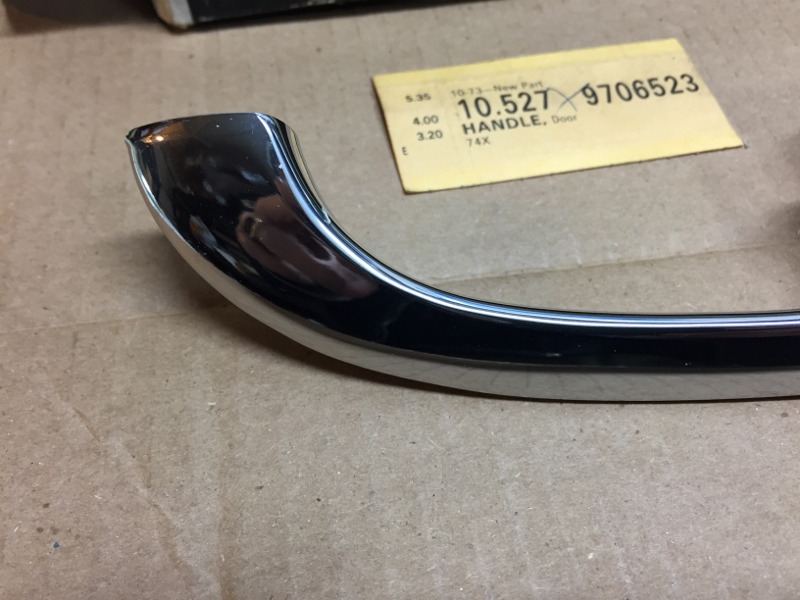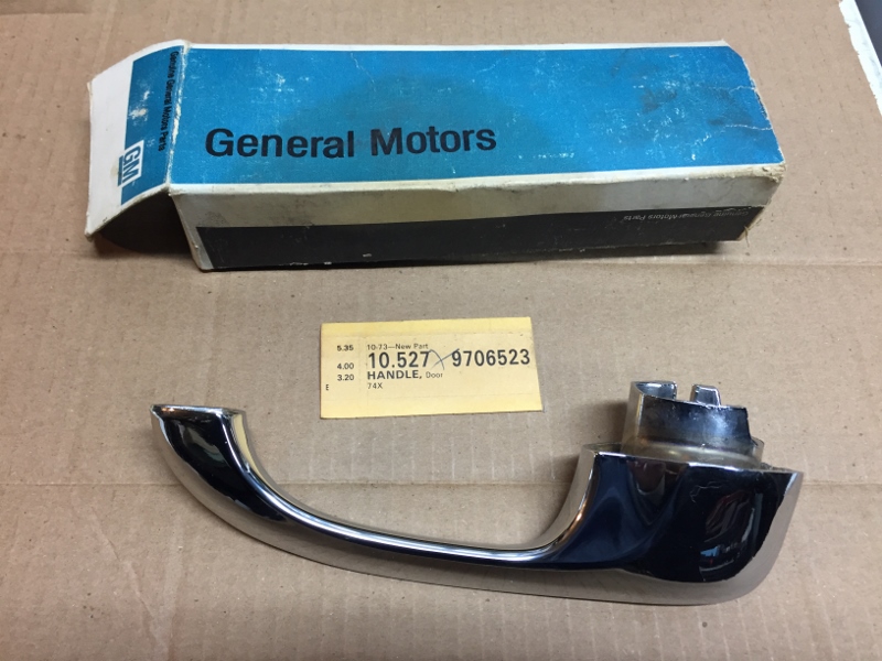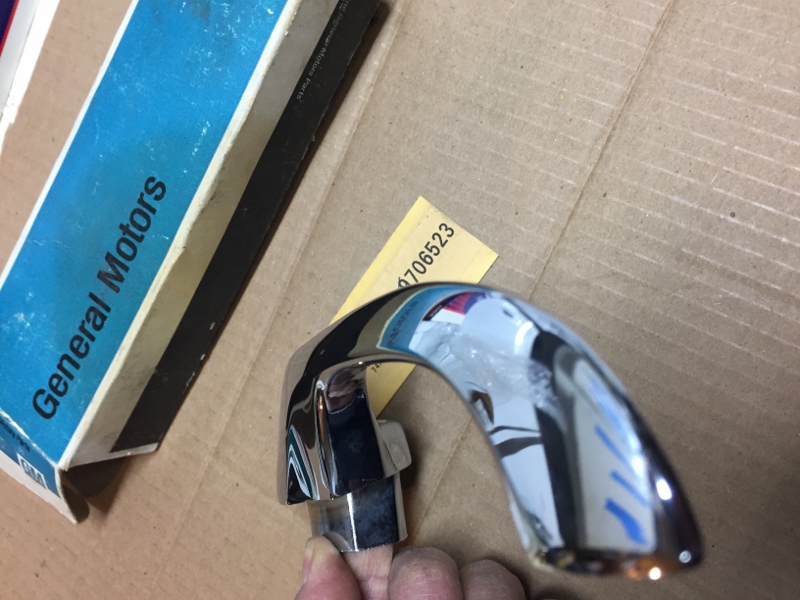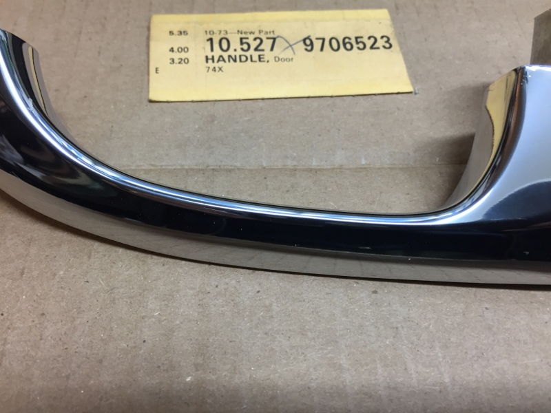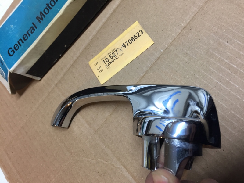 Hi again sYc, hope everyone's staying well. Again, like many of you, I'm puttering around and found another stash of forgotten goodies I had socked away; it's not an L89 motor or anything, but... Anyway, this NOS 9706523 GM handle shows for a 69 Camaro, but I'm sure it will fit and function on many of our favorite models... This is an old one and presents great, I can say with no ego that this is the best GM chrome job I have EVER seen from them of this vintage; see photos. I only have this LH one that I'd been saving. I gently put the mic on it; it feels like the "thick" one - although, I must admit, I'm not sure I've felt a "thin" one - it feels like the ones on my Dad's (my) car, but not sure what that says... mic yours and chime in gang... $100 PPFF shipped to the 48. It is NICE, IMHO. This could go towards the highest quality resto without worry. Thanks again, Anthony Last edited by AnthonyS; 04-14-2020 at 02:49 AM. Reason: sold it sold it sold it |