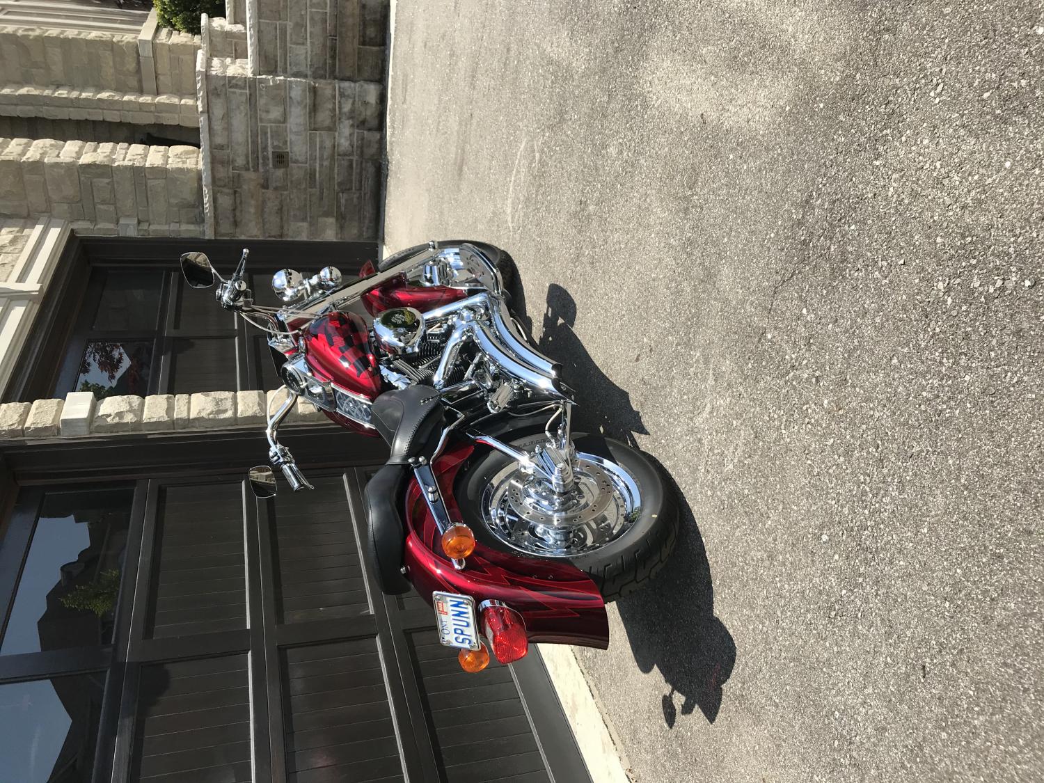 It was purchased new locally in March of 2000. MSRP was $23,733 CDN and the out the door cost was $41,500! It has a factory custom paint set - number 33 of 125 produced with just 5 sets coming to Canada - chrome front end, chrome swing arm, chrome wheels and a custom engraved dash and tank bib that matches the graphics under the Brandy Wine Candy paint. It also got a 95 cubic inch upgrade and a ton of accessories. It left the dealer with 25 kms (15 miles) on it and was parked in the owner’s living room until July of 2019 and never ridden. A local bike guy who new the original owner purchased it and spent $4k recommissioning the bike and adding the current exhaust pipes which compliment the graphics in the paint also. He added another 168 kms and sold it to me. I’m probably going to take some of the accessories off to tone it down a little, but otherwise I love it!