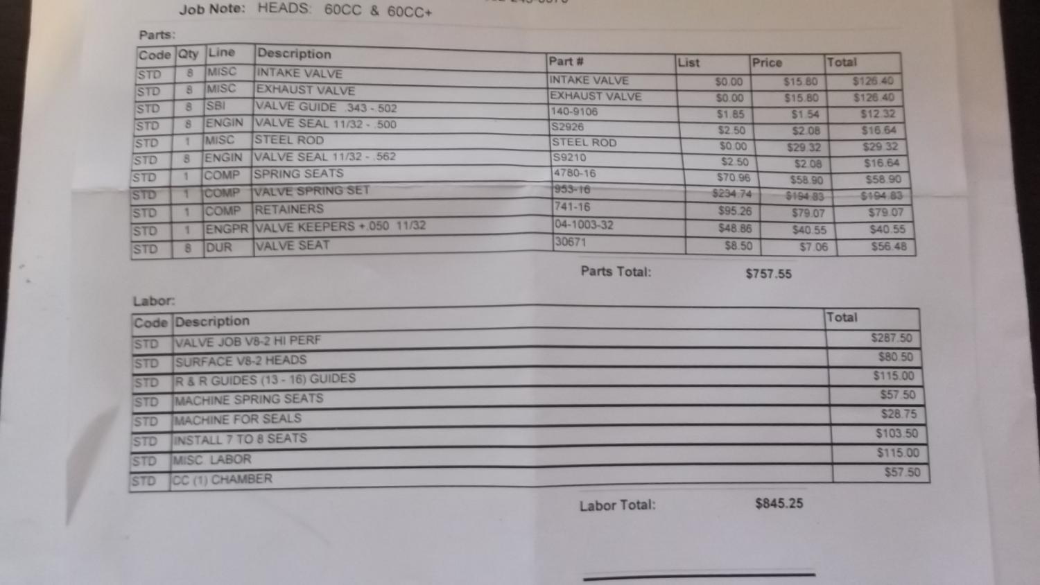 New price.$7500 but the used valves,springs and retainers are no longer avail.Tom