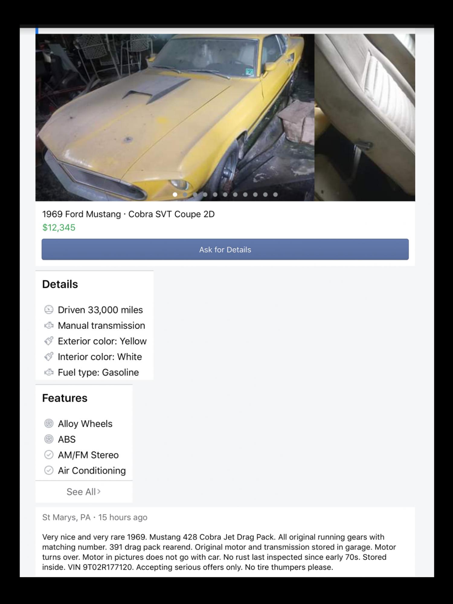 Ad text says "original motor and transmission stored in garage"