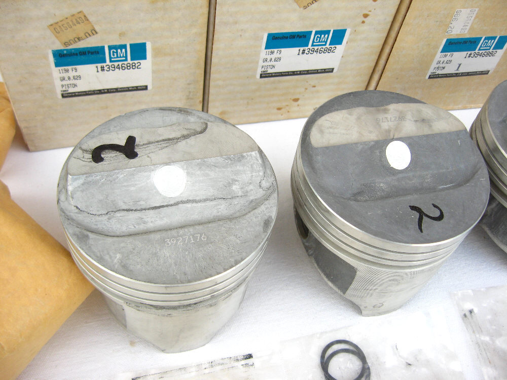 (8) NOS GM .030" oversize NOS GM pistons. Correct free floating pistons for the 1968 Z/28(Second Design) and 1969 Camaro Z/28. Four of the GM boxes are sealed. These pistons are all MINT condition.