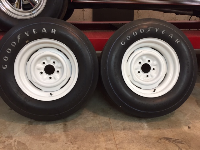 GoodYear Blue Streak slicks. Please look at pictures for actual dimensions. If you have interest in these please contact me for better pics. Tires look good for being 50+ years old. I am happy to bring them outside (when it stops raining here) and take photos in natural light so you can see the condition. Please PM me with you phone or email. Tires have newer tubes. Wheels are 15-7, Chevy 4 3/4 pattern. Wheels have vintage late 60's centers pit free from CA. The wheels have new hoops installed by a professional wheel shop. Wheels have the right look not like the repro steel wheels being sold. I can ship but the cost I suspect will be a little crazy. Asking $1350 plus shipping. Thanks
