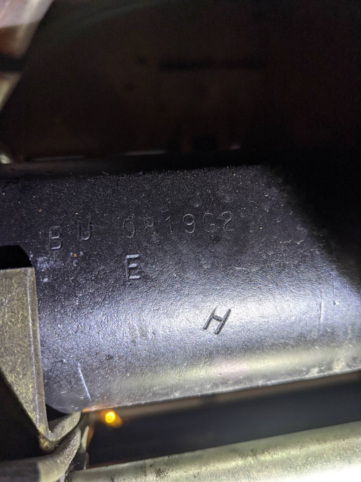 But, you have to wonder why it is so "aged". If in fact, someone cared enough about the original WS to remove carefully and save it (most got removed with a razor blade scraper and were destroyed), why would they have stored it in such a way that it ended up looking like this? Would like to hear from KurtS on the engine stamp. Hard to tell with all the paint, but I don't like it. Like William said, doubt it would have had the partial stamped down by the oil filter.