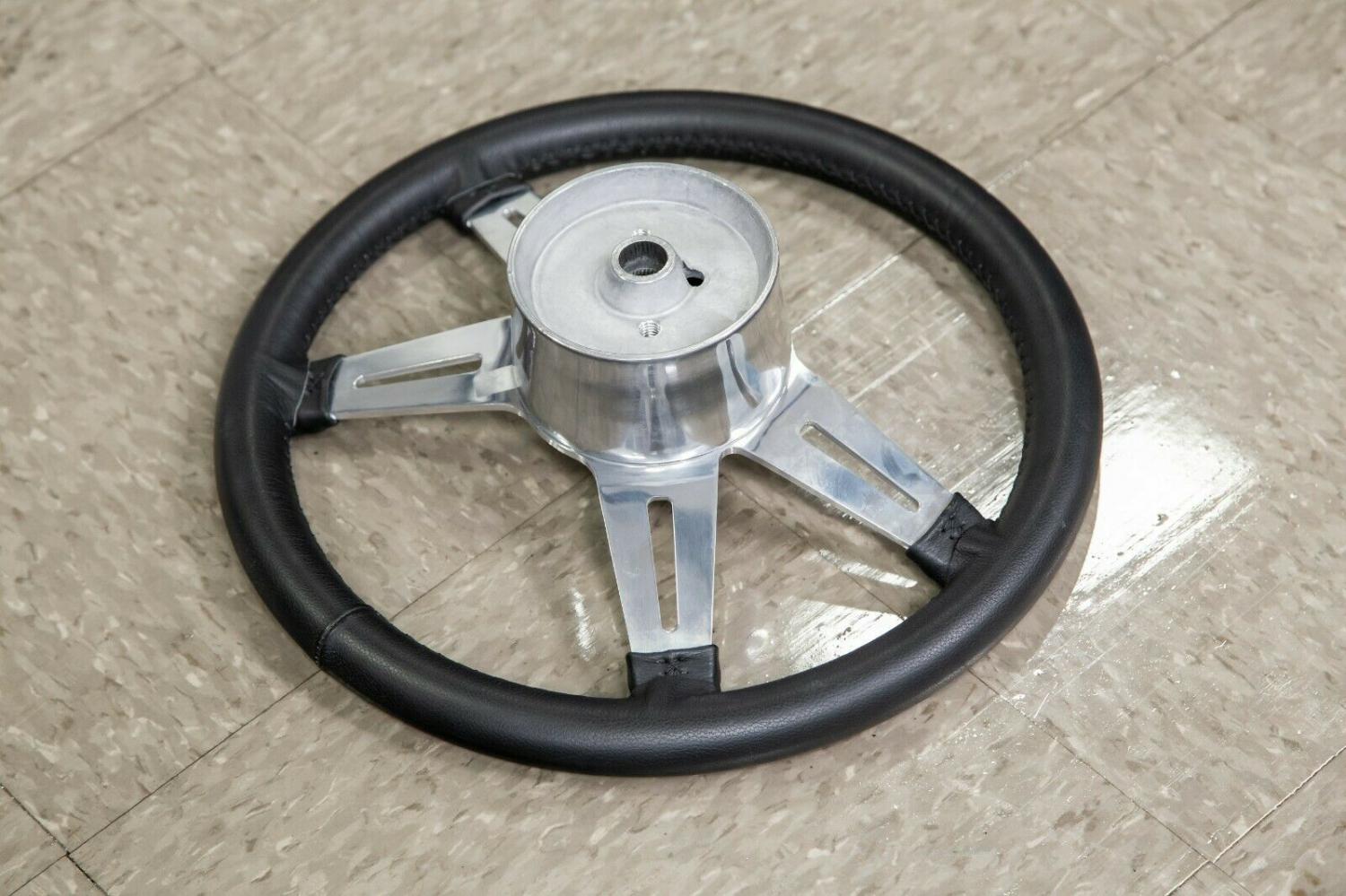 Custom 14.5" 1969 Chevrolet Camaro Black Leather Polished Steering Wheel. This was removed and replaced with a new custom steering wheel. We decided to go with a different appearance. This wheel is in great condition, please see photos. Price: $75 obo Location: Seekonk, MA