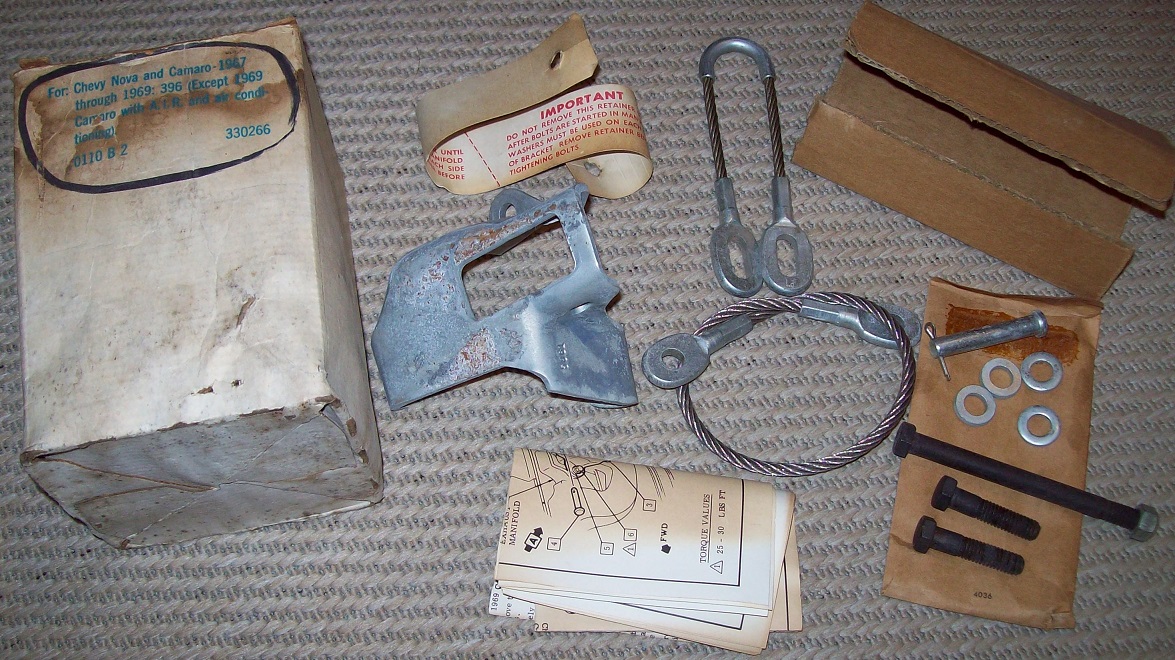 -330280 Engine Lift Stop Cable $50 each (One pack still left) -330266 Engine Lift Stop Kit Big Block $150 *SOLD* -325873 Engine Lift Stop Kit Small Block $100 *SOLD* Photos clearly show boxes description for each application. Shipping add $11 for Cable or $18 for Kits, Paypal "Friends"