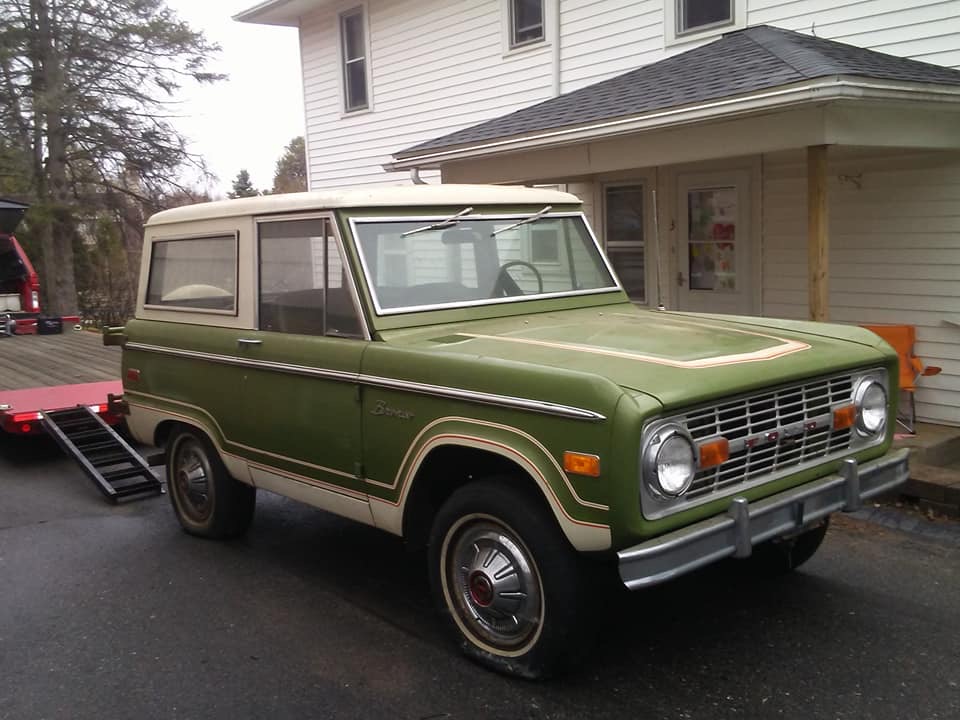 1975 Ford Bronco Ranger "Garage Find" survivor with 35,000 miles 302 Automatic Power steering. Came from down south but located in Iowa. Green glow with Ranger green hounds tooth interior. This bronco is 100% original including interior and paint and a high optioned Ranger. Nicest original Bronco I have ever seen. The only parts remove were maintenance items...brakes, belts, hoses....which I still have the originals that were on it new that go with vehicle. Radiator was replaced but I have the original which seems fine but could use restoration. I also added power brakes but have the original master cylinder so it can be easily put back to factory. This is a true time capsule. The bronco runs and drives excellent. I would drive it anywhere. I collect survivors and this is the most unbelievable vehicle I have owned. It smells and drives new. Clear Iowa Title